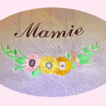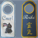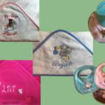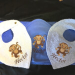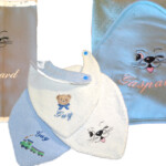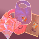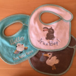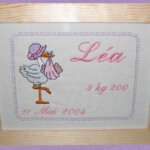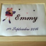 Cadeaux : Naissance (protège carnet de santé, bavoirs, sortie de bain, pancarte de porte brodée…), mariage, coussin d’alliances, tableau, décoration de salle, pochettes dragées ….