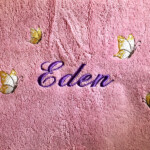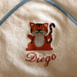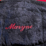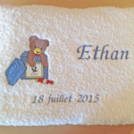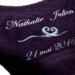 Linge de maison : broderie personnalisée sur serviette éponge, peignoir, tablier de cuisine, drap, …
